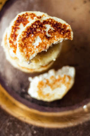 Lactose free, low carb cottage cheese pancakes, cookbook recipe - healthy nutrition, rustic and traditional food concept. Your favourite homemade breakfast is served