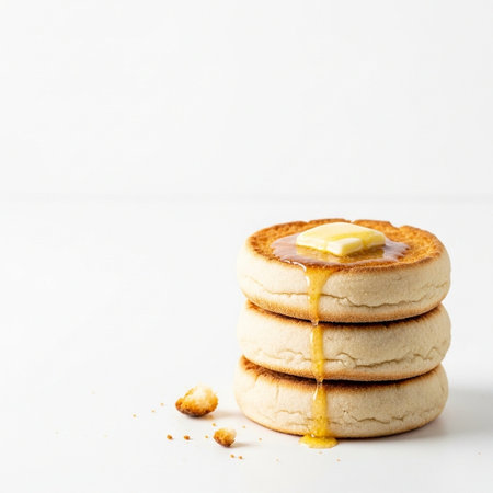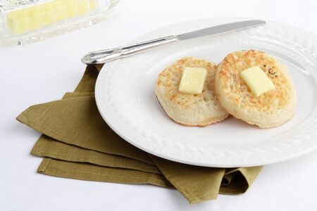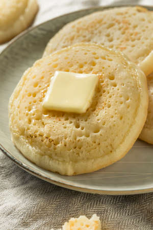 Homemade Grilled British Crumpets with Butter for Breakfast
