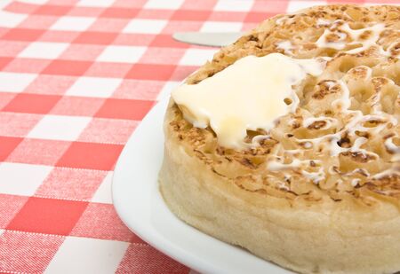 Traditional English Hot Buttered Crumpet with melting butter.