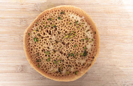 Baghrir - Moroccan traditional eating. Pancakes with honey