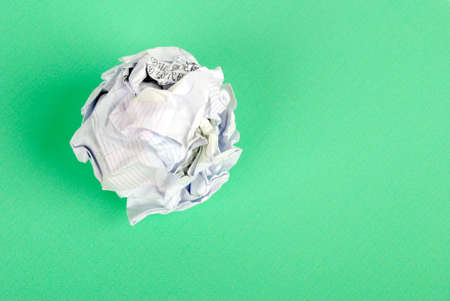 crumpled balls of paper on a green background, top view. Concept of finding innovative ideas, right solutions. Elimination of errors, unification around an idea, top view