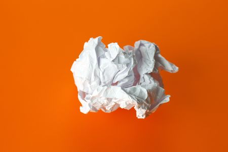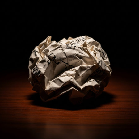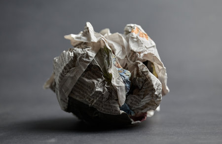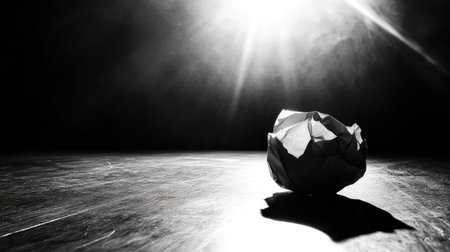 A crumpled ball of newspaper sits isolated, illuminated by a single, harsh light source.