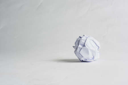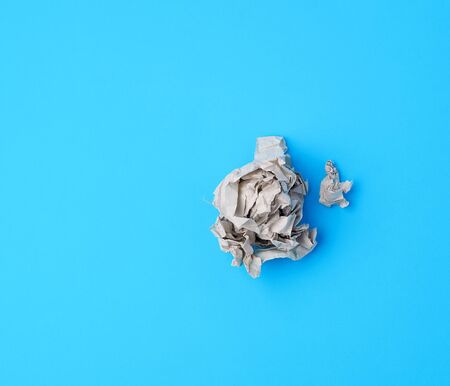 A piece of crumpled white paper on a blue background. Creativity crisis concept.
