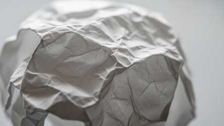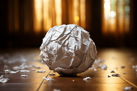 Closeup View of Crumpled Wrinkled White Paper Ball in the Floor AI Generative