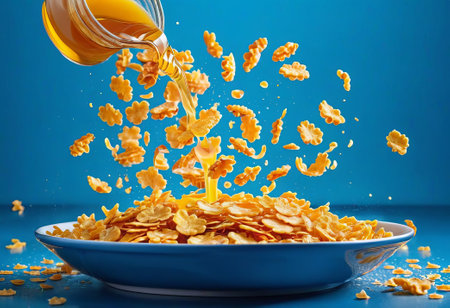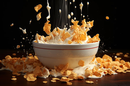 Nutritious Tasty cornflakes milk bowl. Water fitness food nutrition snack. Generate Ai