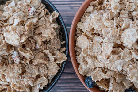 Bowls of morning breakfast cereal