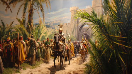 PalmSunday on the occasion of Jesus' entry into Jerusalem --ar 16:9 --v 6 Job ID: b6ffcdd3-2681-4e19-bc40-c3963d8c9e70