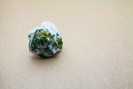 crumpled balls of paper on a green background, top view. Concept of finding innovative ideas, right solutions. Elimination of errors, unification around an idea, top view