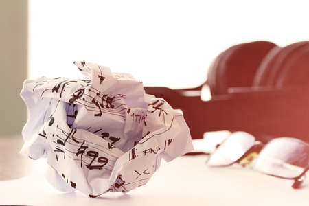 composing music concept with shallow DOF evenly matched crumpled musical notes paper