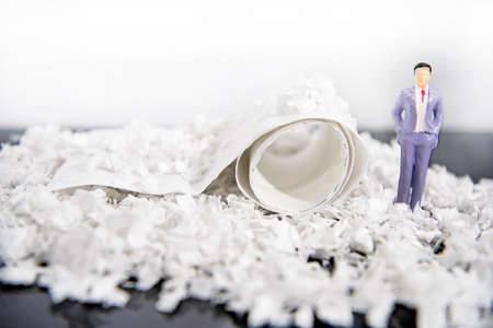 shredded paper tagged with balance sheet, symbolic photo for data destruction, budgets and accounting