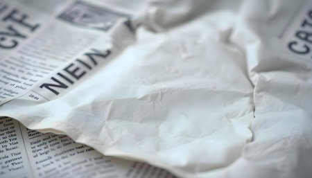 This image features a vintage torn newspaper fragment against a white background, showcasing textured paper and faded text, ideal for artistic and historical projects.