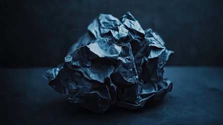 A close-up shot of crumpled black paper on a dark background. The texture and shapes create a striking visual impact, ideal for artistic and contemporary design themes.