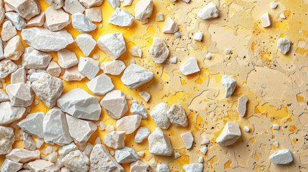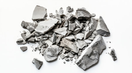 A captivating arrangement of broken plaster pieces displaying various shapes and textures, suitable for creative projects, design applications, or renovations emphasizing modern aesthetics.