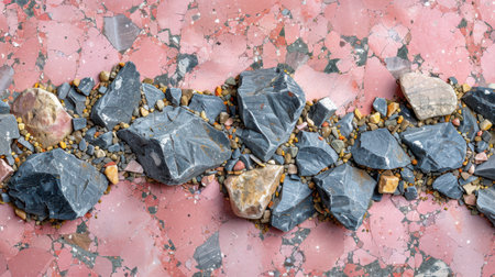 Gray rocks and pebbles creating a rough, textured surface, ideal for backgrounds and nature themed projects