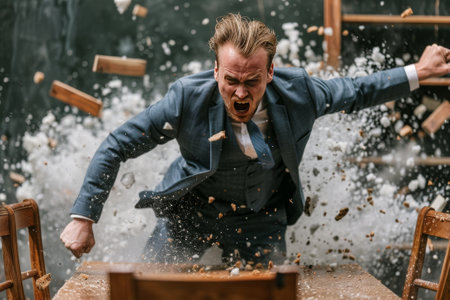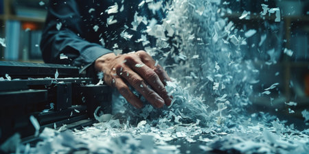 A person expresses frustration by ripping a piece of paper. The dynamic action creates a moment of chaos, capturing the raw emotion and tension of the struggle.