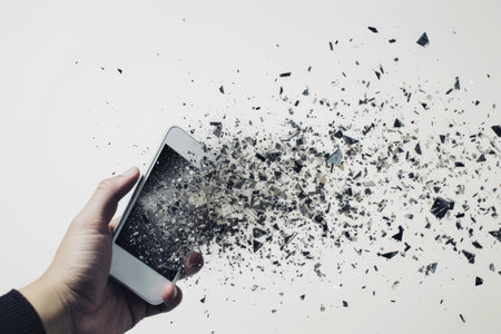Smartphone explosion on blue background. Edit by using explosion effect.
