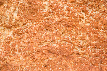 Dry clods of wet sand texture. Sandy ground background with orange toning. Film grain texture. Soft focus. Blur