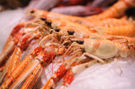 fresh Nephrops on sale at market