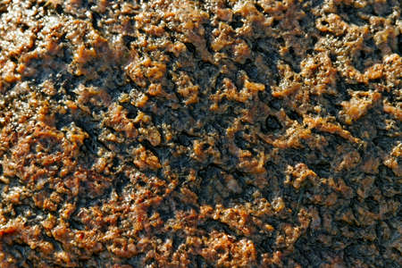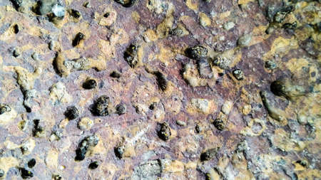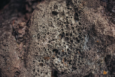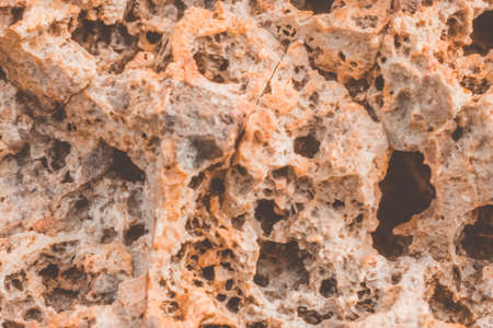 Abstract nature real photo background. Macro close up details dry rock crack stone solid foamy formations or lava volcanic, pumice texture ancient lunar style. Light orange vintage stock