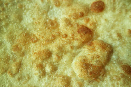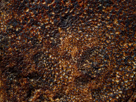 The texture or background of the back of the burnt side of the pancake in close-up.