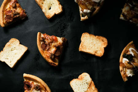 Salty, bread crumbs with garlic for beer and a frame for copy space.