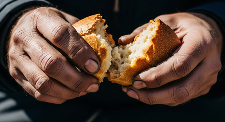 AI Generated. Broken hand Matza for traditional Jewish passover