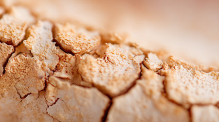 Captivating close-up view of a dry and cracked surface, showcasing intricate textures of natural earth material. Ideal for nature-themed projects.