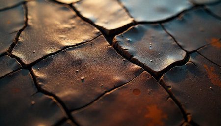 Detailed view of a cracked surface showing intricate patterns and textures caused by natural geological processes. Created with Generative AI