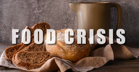 American dollar and a slice of black bread on a white plate on sacking, the price of bread