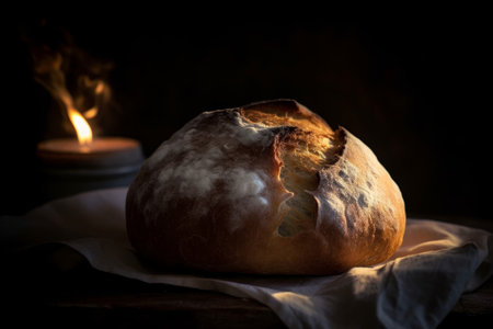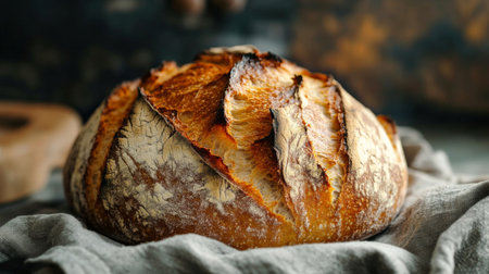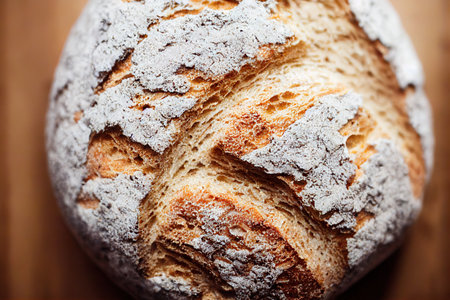 A rustic sourdough bread with a crisp crust and a tangy flavor created with Generative AI