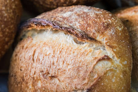 A closeup of delicious small sourdoughs on each other under the lights - food concept