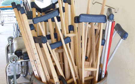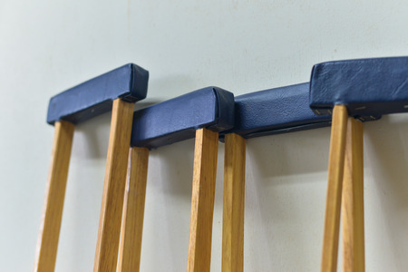 image of crutches in hospital day time .