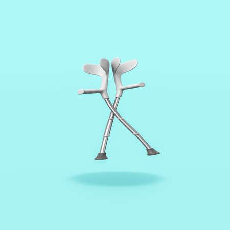 Pair of Crutches on Blue Background