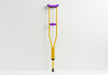 Yellow crutch with purple handles
