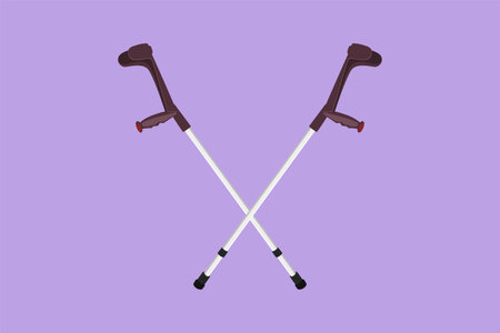Cartoon flat style drawing crutches icon. Elbow crutch, telescopic metal crutch. Medical equipment rehabilitation for people with diseases of musculoskeletal system. Graphic design vector illustration