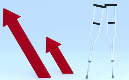 3DCG of realistic crutches and arrows, images of accidents and medical insurance