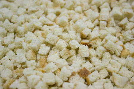 White bread high-fired croutons close-up focus at the centre.