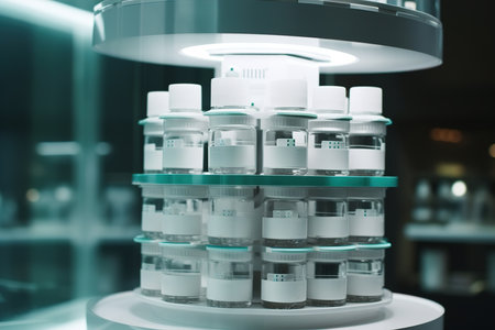 Vials with samples of SARS-COV-1 prepared cold in a laboratory, epiedomological study on Sars-CoV-2 Covid-19, conceptual image