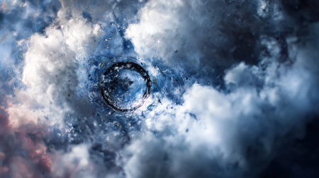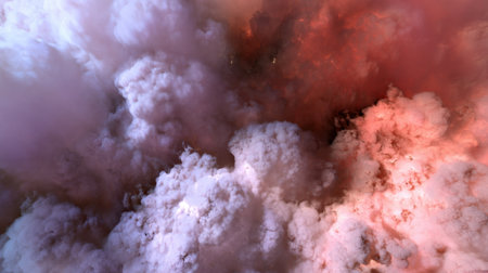 Cinematic swirling smoke pattern texture in vibrant hues from a top view perspective