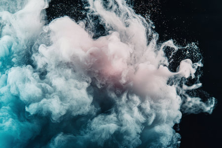 Abstract image of blue and white smoke swirling together on a dark, background, creating a dynamic and ethereal effect.