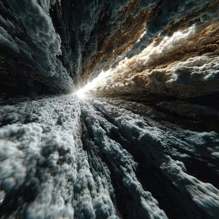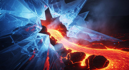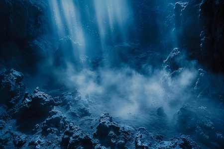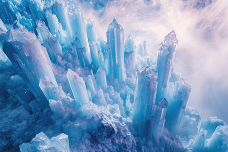 A photo capturing a vast gathering of ice crystals suspended in the atmosphere, Crystalline structures in cool hues suggesting an icy landscape, AI Generated