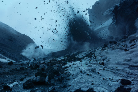 Dramatic explosion with smoke billowing and fiery glow