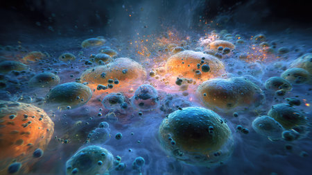 Microscopic cells multiplying in organism environment