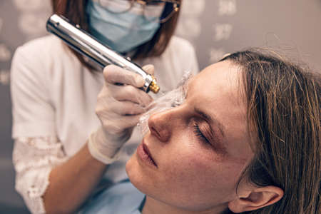 A cosmetologist performs hydropiling in a beauty salon. Skin care.