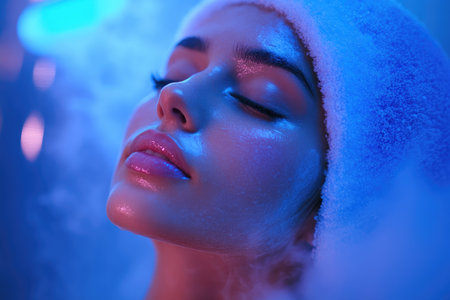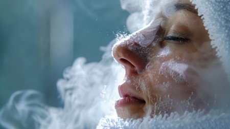 Close-up of woman enjoying a cryotherapy facial treatment, promoting wellness and skincare