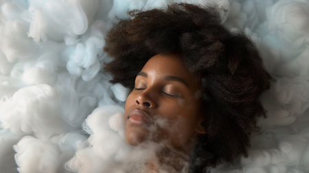 Afrodescendant woman sleeping on a cloud, generative ai