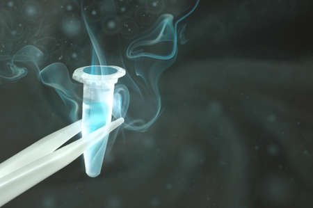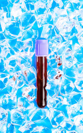 Test tube with blood in ice. Blood test. Biotest. DNA