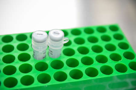 Test tubes with biomaterial in the laboratory. concept of medical, chemicals or scientific laboratory research and Innovation in the laboratory.