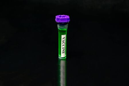 close up on vaccine bottle for medical sample set at pharmaceutical operation room or scientific laboratory for fight and protect coronavirus (MERS-n COV) concept