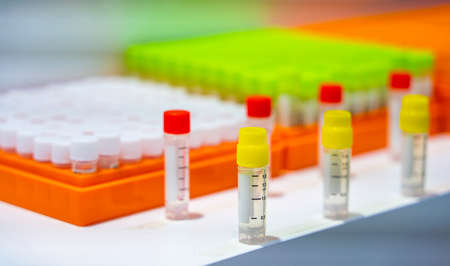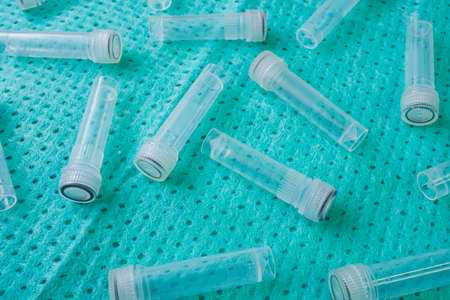 Plastic test tubes with caps for the collection of samples. Sampling tubes for laboratory examination.